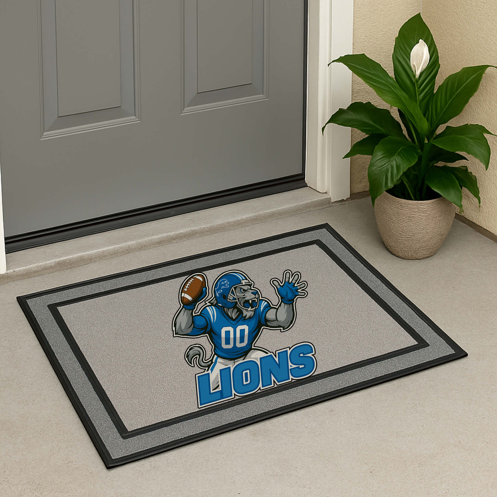 Bring your game day pride home with our Detroit Lions inspired door mat! Measuring 18" x 30", this durable and fade-resistant mat is perfect for any fans entryway. Designed with recycled rubber and a slip-resistant backing, it stays in place while trapping dirt and moisture to keep your floors clean. Weather-ready and easy to maintain, this football-inspired mat is the ultimate way to welcome guests while showing off your team spirit all year long.