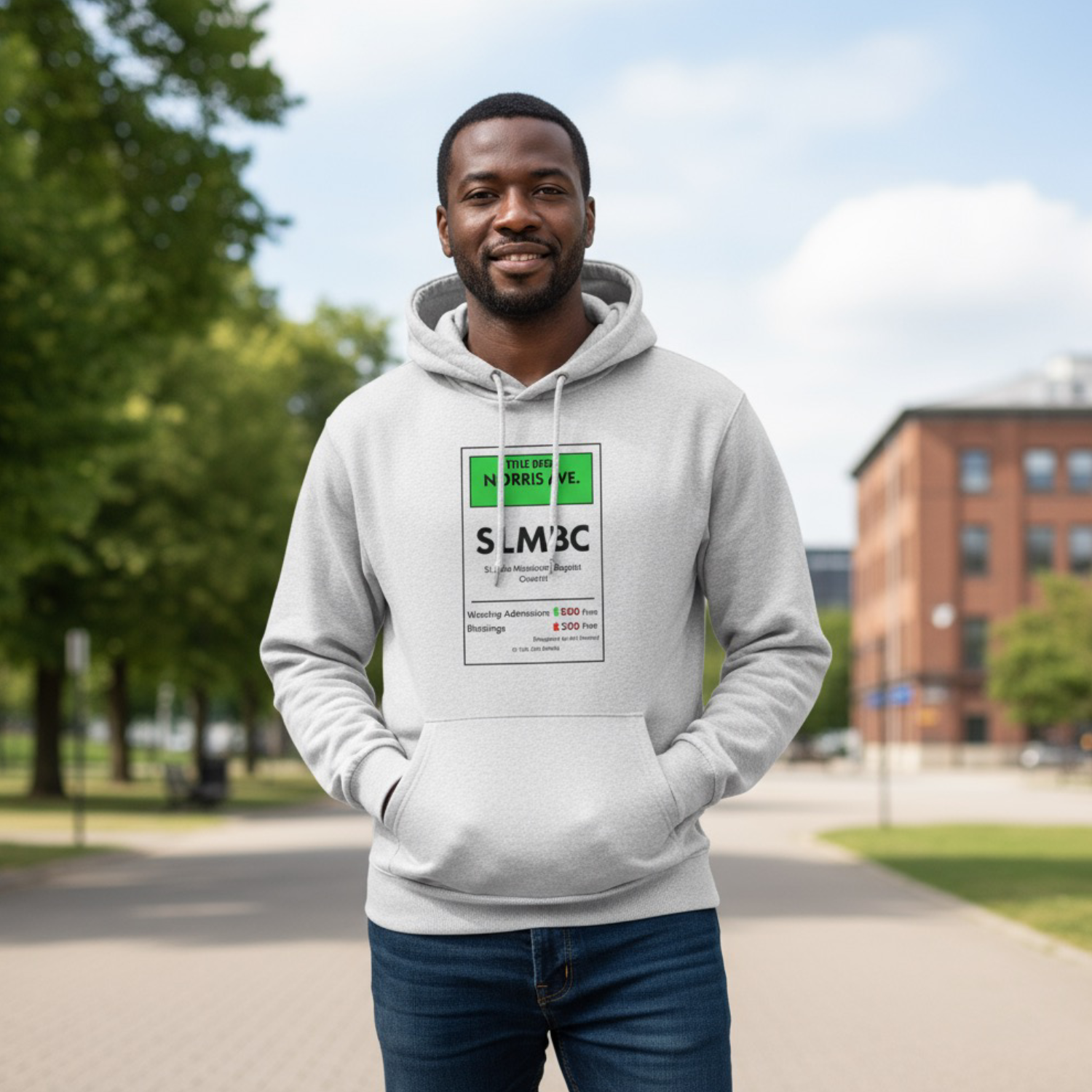 Wrap up in comfort and creativity with the SLMBC Norris Ave Title Deed Hoodie, where faith meets fun and fashion. Inspired by the classic Monopoly board, this design highlights Norris Ave — home to St. Luke Missionary Baptist Church — reminding us that in God’s Kingdom, worship and blessings are always free!