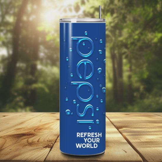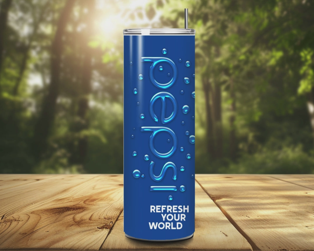 Refresh your world with this bold and classic 20oz Pepsi UV-printed tumbler! Featuring the iconic red, white, and blue Pepsi logo with water-drop detailing, this tumbler is a must-have for soda lovers, collectors, and anyone who loves a cool, refreshing look to their drinkware.